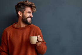man coffee home smiling happy morning relax breakfast cup drink mug lifestyle adult portrait male people person caucasian indoors lifestyle coffee lover caffeine coffee time aroma beverage steam breakfast coffee casual coffee break coffee cup coffee mug enjoyment energy hot refreshment smileImagine Buddy