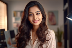 indian girl student professional cheerful beautiful home office looking camera happy confident young woman smile ethnic education technology work business career success entrepreneur freelancer remote online diversity inclusion representation women empowerment leadership inspiration motivation rolemodel ambition careergoals future dreams goals aspirations lifestyle indoors adultsImagine Buddy