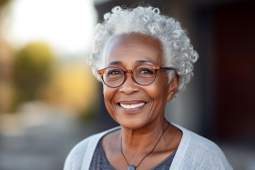Happy old black woman photo at home