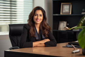 businesswoman indian smiling attractive confident home office desk modern camera pose confident successful female professional career work happy motivated inspired ambitious driven determined independent empowered leader role model entrepreneur freelancer startup remote work work-life balance productivity success inspiration motivation empowerment diversity inclusion representation lifestyle indoors adultsImagine Buddy
