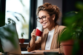 coffee woman home office smile happy work productive career business success female lifestyle millennial remote entrepreneur freelance independent laptop computer desk chair coffee mug cup beverage caffeine energy focus break relax enjoying content satisfied successful ambitious motivated inspired positive confident empowered rolemodel motivation inspiration successstory dreamjob worklifebalance femalepower girlboss womeninbusiness womenempowerment indoors adultsImagine Buddy