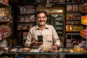 shopping and retail men realistic indian smallbusiness owner mobile phone showing camera business technology digital entrepreneur startup india asian male female young old smiling happy excited successful confident motivated inspiring determined hardworking passionate dedicated driven ecommerce online socialmedia marketing sales growth success inspiration motivation rolemodelImagine Buddy