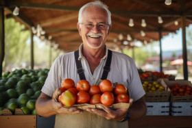 shopping and retail men realistic senior man smiling apples fruit vegetable farmer market waist portrait fresh produce healthy organic local fresh delicious healthy happy friendly kind helpful knowledgeable experienced professional friendly customer service business entrepreneur small business small business owner senior citizen retirement active aging lifestyle community supportImagine Buddy