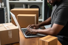 shopping and retail men realistic shipping packaging laptop order small business entrepreneur work from home home office package box shipping label tracking number delivery customer satisfaction success busy hard work productive motivated ambitious goal-oriented focused dedicated passionate professional reliable trustworthy convenient affordable fast free shipping returns exchange gift present holiday birthday anniversary special occasion seasonal new release popular bestseller trendingImagine Buddy