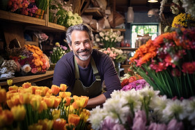 shopping and retail men realistic florist male flowers shop small business business owner entrepreneur work passion happy smile friendly flowershop bouquet rose lily sunflower daisy tulips orchid arrangement delivery vase vase arrangement gift occasion special occasion birthday anniversary wedding valentine's day mother's day father's day christmas holiday green nature beauty fresh colorful bright vibrant cheerful positive uplifting inspiringImagine Buddy