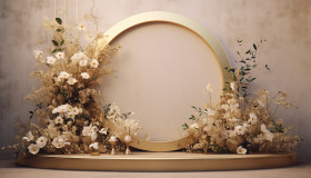 Wedding floral wall and gold flower arrangement, free ai prompts and images floral photo backdrops