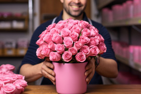shopping and retail men realistic florist shop flowers roses pink plant pot man male person business small business local business small business owner entrepreneur smile happy friendly customer service fresh beautiful blooming fragrant nature spring summer gift bouquet arrangement floral design delivery occasion special event birthday anniversary love romance appreciation gratitude sympathy condolence celebration joy happinessImagine Buddy