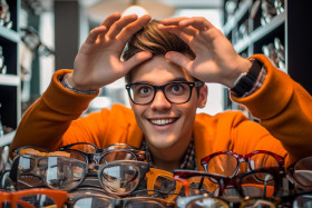 shopping and retail men realistic optician glasses sunglasses hands looking photo shopping fashion eyewear style accessories vision eyes vision care eye doctor eye exam prescription glasses frames lenses purchase buying gift accessory trendy stylish fashionable coolImagine Buddy