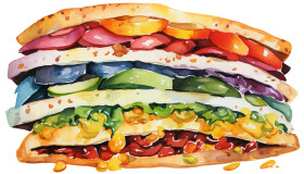 A photo of a watercolor of a sandwich with different toppings clip art, free ai prompts for food clip art