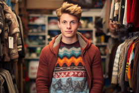 shopping and retail men realistic vintage portrait young man shop hipster retro fashion style clothes accessories thrift store antique classic timeless unique eclectic quirky eclectic bohemian hipster artsy trendy fashionable cool stylish handsome photogenic model expression pose composition lighting background atmosphere mood vibe story narrative emotion feeling thought introspection contemplation introspectionImagine Buddy