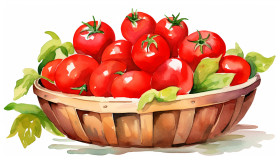 A photo of a full watercolor tomatoes basket, free ai prompts for food clip art
