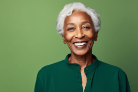 lifestyle seniors indoors black senior woman smiling camera green background portrait waist up happy joyful positive energetic cheerful vibrant lively animated enthusiastic optimistic hopeful content satisfied pleased grateful blessed thankful appreciative humbled blessed fortunate lucky fortunate privileged blessed favored thankful appreciative blessed fortunate lucky fortunate privilegedImagine Buddy