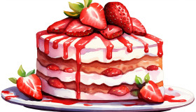 A photo of a watercolor clipart strawberry cake, free ai prompts for food clip art