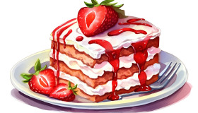 A photo of a watercolor clipart strawberry cake, free ai prompts for food clip art