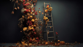A ladder leaning against a ladder and some dried flowers, free ai prompts and images floral photo backdrops