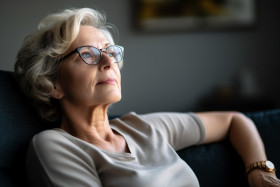 lifestyle seniors indoors calm relaxed mature older woman relaxing sitting couch home comfortable cozy peaceful serene content happy at ease carefree tranquil blissful serene contented happy carefree tranquil blissful homebody domestic retirement elderly grandma grannyImagine Buddy