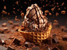 A photo of a chocolate ice cream dessert, free ai prompts for ice cream scoop