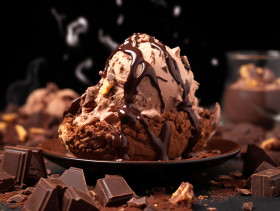 A photo of a chocolate ice cream dessert, free ai prompts for ice cream scoop