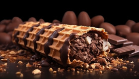 Side view chocolate ice cream with nuts and wafer rolls, free ai prompts for ice cream scoop