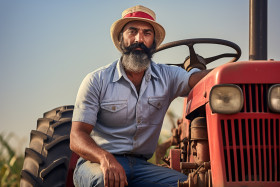 Indian farmer portrait with tractor