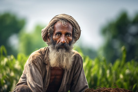 indian poor farmer farm sad loss agriculture poverty rural india man work hard field crop drought rain money debt government help support needy help sympathy empathy emotion feeling mood expression face portrait eyes tear tearful sorrow grief pain hopelessness despairImagine Buddy