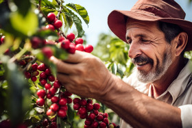 Farmer harvests arabica coffee beans