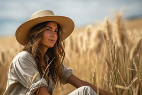 wheat field woman farmer farming agriculture rural landscape nature sky sun hat clothes tired exhausted smiling happy relaxed pause refreshment water food sitting standing leaning looking work break rest rural life country life farm life harvest golden hour summer autumn day outdoors sunshine nature photographyImagine Buddy