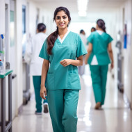 indian woman hospital security personnel work blurred background friendly smiling beautiful young adult female job occupation profession career uniform badge nametag professional smiling face happy cheerful positive helpful kind friendly greeting welcomingImagine Buddy