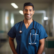 friendly smiling handsome indian man nurse work blurred background healthcare medical profession occupation job care patient help support smile happy cheerful positive confident professional blur healthcare medical profession occupation job careImagine Buddy