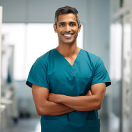 indian man therapist occupational work blurred background friendly smiling handsome male person adult professional medical healthcare patient disability rehabilitation recovery help support assistance treatment service care provider clinic office hospitalImagine Buddy