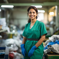 indian woman environmental services staff work friendly smiling beautiful blurred background happy smiling female worker employee employee nature green environment sustainable sustainability sustainable development climate change pollution recycle recycling waste managementImagine Buddy