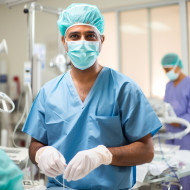 surgeon doctor indian man handsome friendly smiling work blurred background hospital operating room patient care treatment surgery team instruments tools equipment stethoscope scalpel mask scrubs healthcare medicine profession career occupation medical professional skilled experienced dedicated compassionate helpful kind friendly approachable confident reassuringImagine Buddy