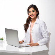 indian woman medical receptionist friendly smiling beautiful work isolated white background healthcare hospital doctor nurse patient clinic appointment smile happy friendly face professional helpful kind caring efficient organized welcoming greetingImagine Buddy