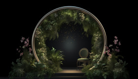 An upside down circular frame with plants on it 3d rendering, free ai prompts and images floral photo backdrops