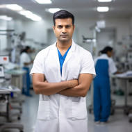 Confident handsome indian man nurse at work on blured background
