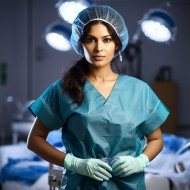surgeon female indian confident beautiful work hospital surgery medicine healthcare professional doctor scrubs mask gloves scalpel tools patient patient care operating room medicine healthcare medical professional surgery operation treatment life health science technology innovationImagine Buddy