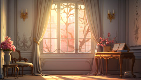A window has curtains on it next to the wall, free ai prompts and images floral photo backdrops