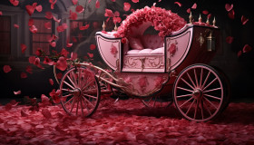 Grand carriage made of rose petals and a rose print from high end professional photo lab and image gallery, free ai prompts and images floral photo backdrops