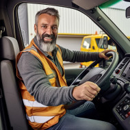 driver automotive handsome smiling work blurred background transportation vehicle delivery truck bus taxi car transportation worker professional happy friendly confident experienced reliable trustworthy service customer satisfaction efficiency safety quality performance satisfaction happyImagine Buddy