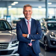 automotive sales representative man friendly smiling handsome work blurred background car dealership customer happy satisfied confident professional trustworthy helping assisting explaining selling closing deal commission money success career future growth opportunityImagine Buddy