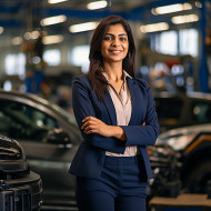 friendly smiling beautiful indian woman automotive marketing manager work blurred background indian woman car dealership sales marketing promotion advertising social media digital marketing branding content creation strategy analytics campaign performance optimizationImagine Buddy