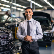professional business indian male man executive manager automotive general auto work blurred background friendly smiling handsome portrait confident success leader success industry technology transportation vehiclesImagine Buddy