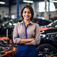 automotive customer relations specialist woman indian friendly smiling beautiful work blurred background business professional career job office smile happy positive confident successful female technology industry service help support communicationImagine Buddy