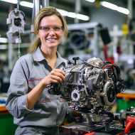 automotive woman specialist parts friendly smiling beautiful work background blurred smile happy mechanic engineer technician female professional career role job occupation employment industry business service repair maintenance assistance customer service help supportImagine Buddy