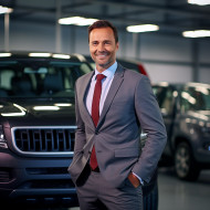 automotive sales manager man friendly smiling handsome work blurred background car dealership showroom customer business professional confident happy successful smiling face portrait male adult person happy confident friendly professional successful attractive business person salesmanImagine Buddy