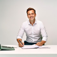 automotive accountant man friendly smiling handsome work white background professional business happy successful confident motivated dedicated experienced expert cheerful positive confident reliable trustworthy friendly professional office deskImagine Buddy