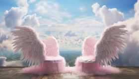 Two angel wings are sitting on a cloud, free ai prompts and images floral photo backdrops