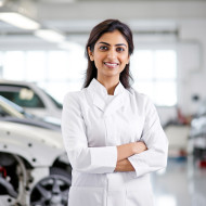 indian woman automotive safety compliance specialist work white background friendly smiling beautiful professional female engineer technician mechanic employee worker business career successful confident happy motivated positive determined dedicated passionate leader role modelImagine Buddy