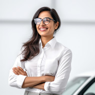 indian woman automotive inventory manager work white background friendly smiling beautiful business career female professional success leadership empowerment role model inspiration motivation diversity inclusion equality workplace diversity inclusion equality workplace employeeImagine Buddy