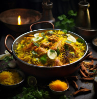 biryani food rice spicy delicious indian cuisine meal dish lunch dinner traditional fragrant basmati chicken lamb beef vegetarian tasty aromatic flavorful festive celebration festivity gourmet recipe cooked saffron curried herbs spices hot steamy yummy mouthwatering served platter authentic homemade takeout illustration imaginebuddy buddyImagine Buddy